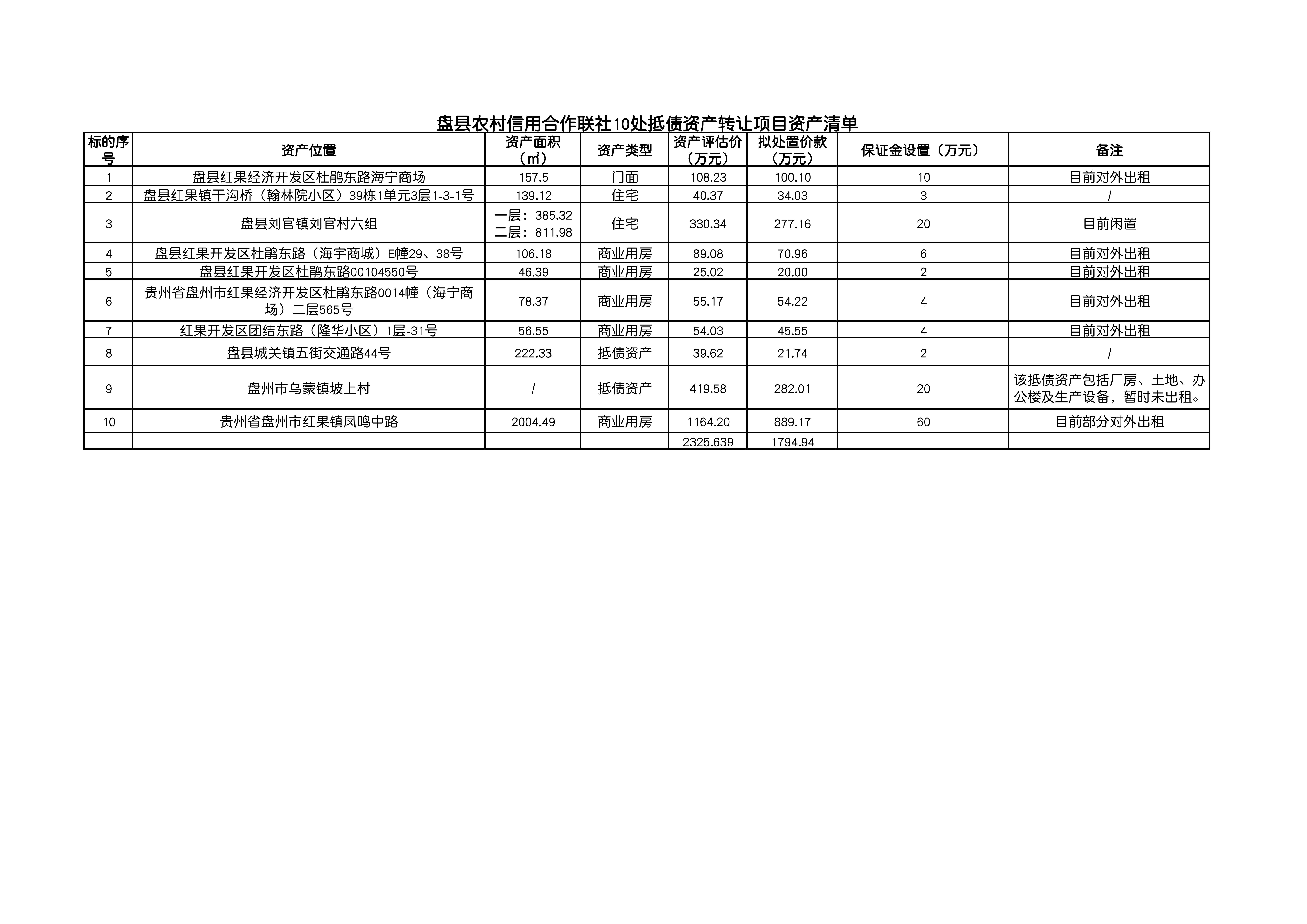 盤縣農(nóng)村信用合作聯(lián)社10處抵債資產(chǎn)轉(zhuǎn)讓項(xiàng)目